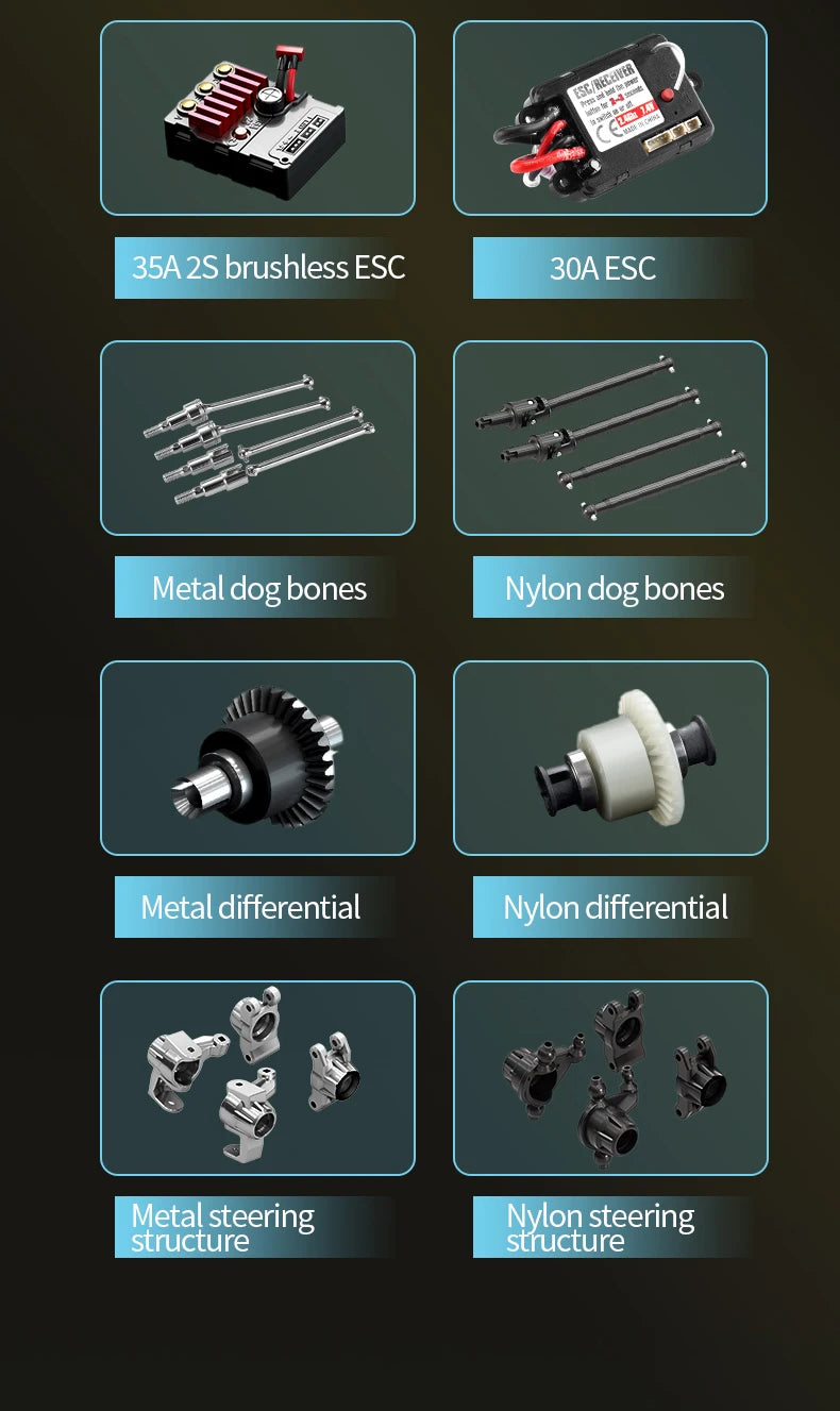 - Durable metal and plastic chassis designed to handle aggressive drifting and off-road abuse.