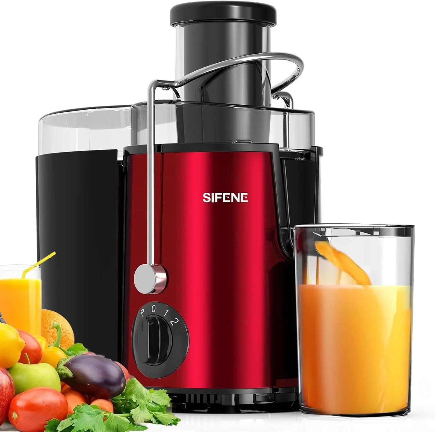 SiFENE 3 Inch Big Mouth Centrifugal Juicer Extractor for Fruits and Vegetables Compact Juicing Maker Non BPA Easy to Clean Red