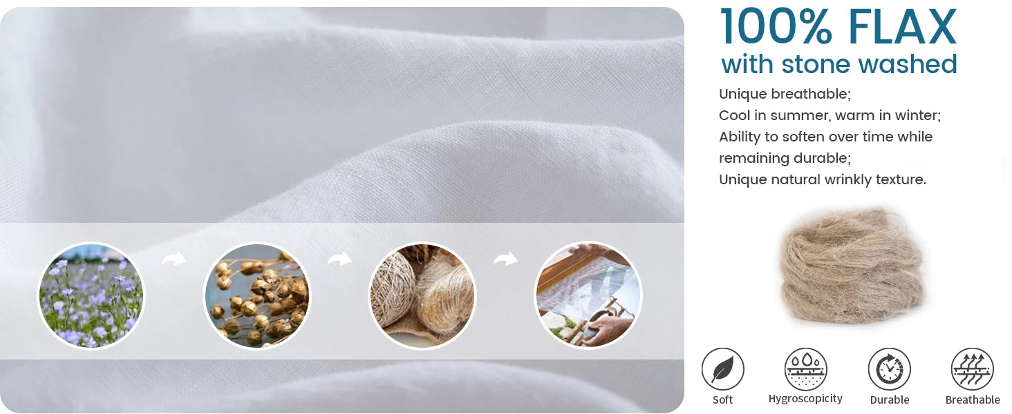 - Material: 100% linen (French flax) for a breathable, naturally cool feel.
