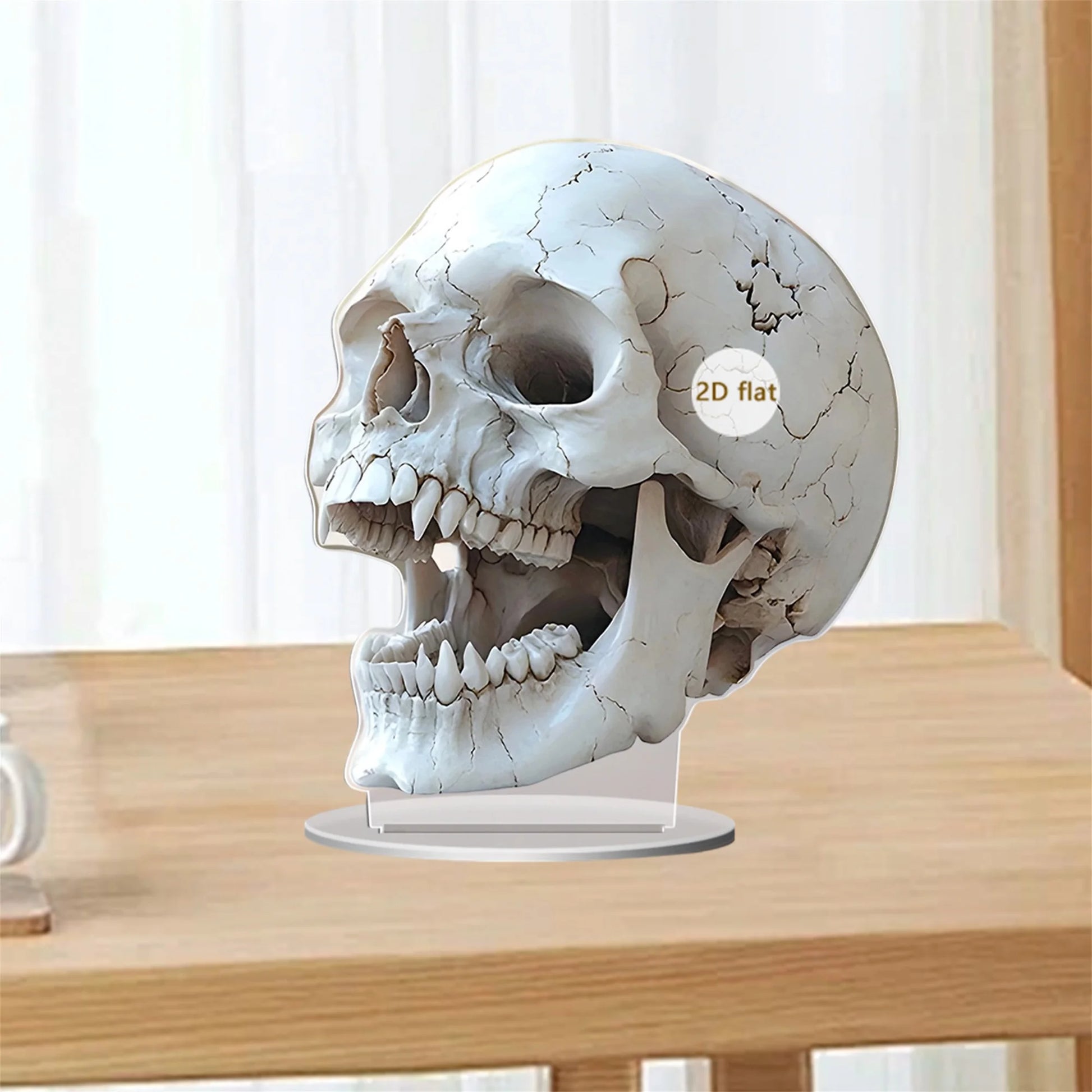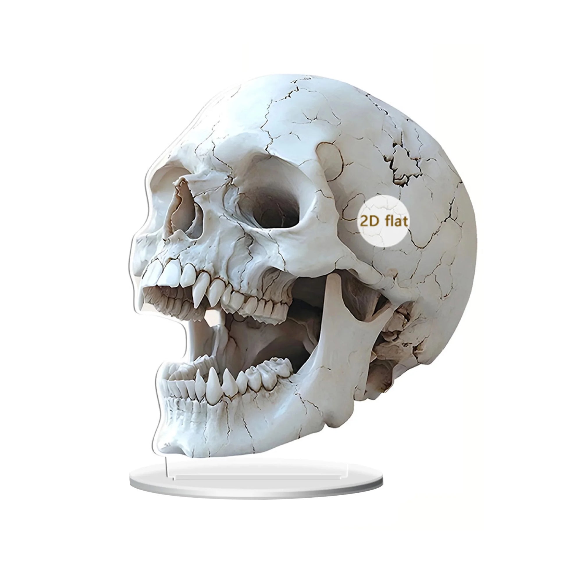Spooky Halloween Skull Decorations Set of 3 2D Flat Acrylic Skeleton Head Ornaments for Home Holiday Party Tabletop Display