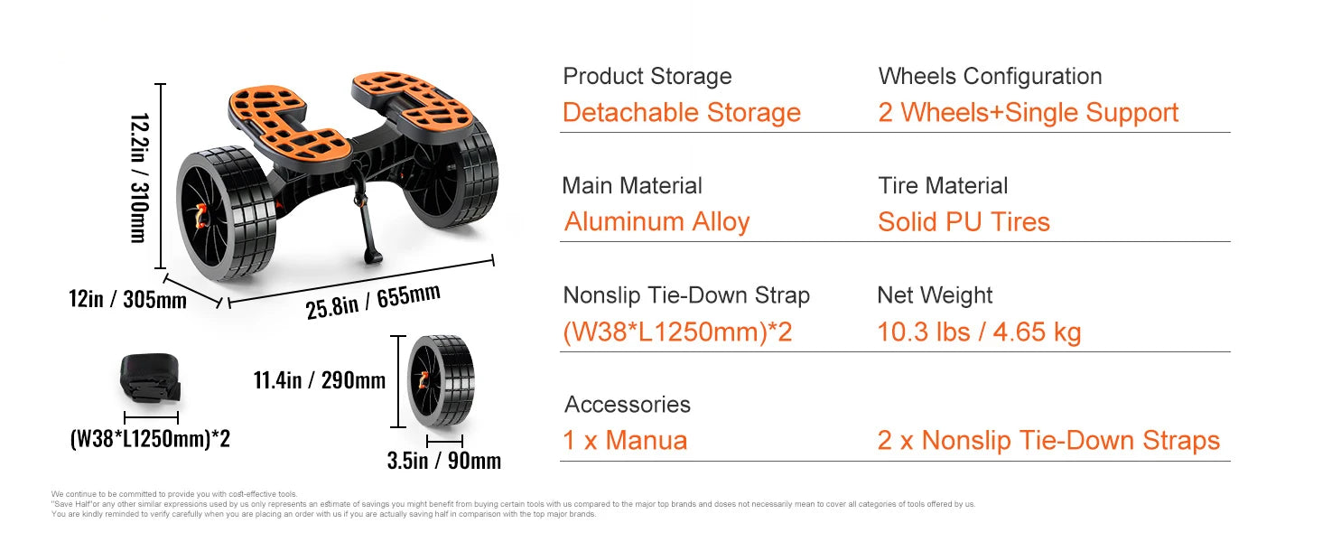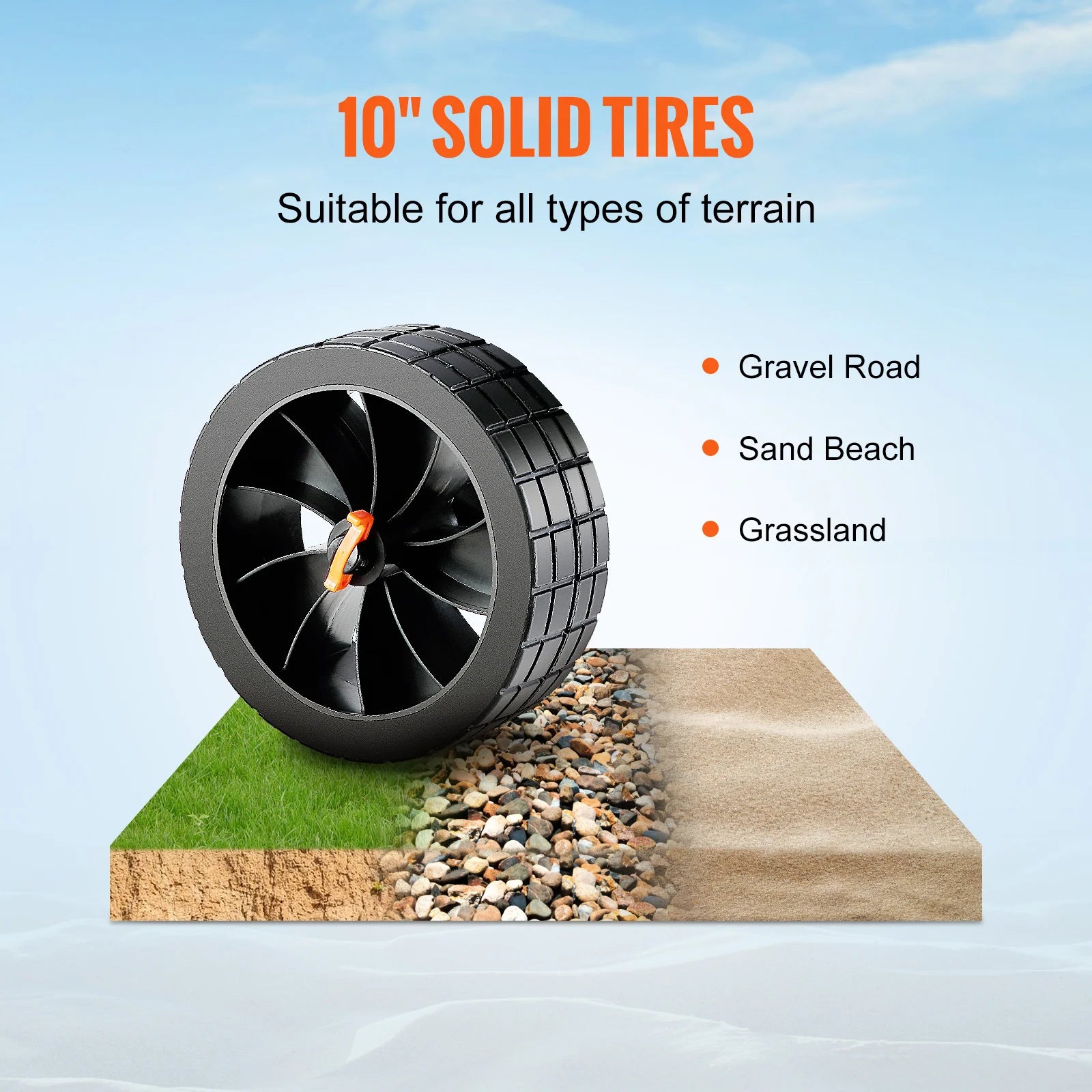 - Tires: 10 inch solid PU tires deliver steady, low-maintenance rolling on sand, grass, and pavement.