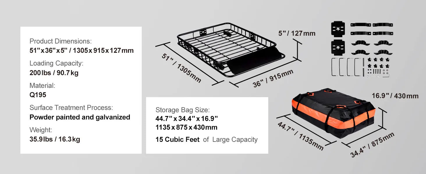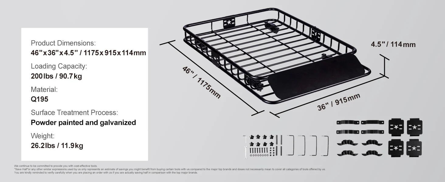 SucceBuy Rooftop Cargo Basket 46x36x4.5 Carrier 200Lbs