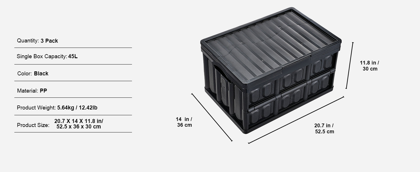- Three collapsible storage bins with lids