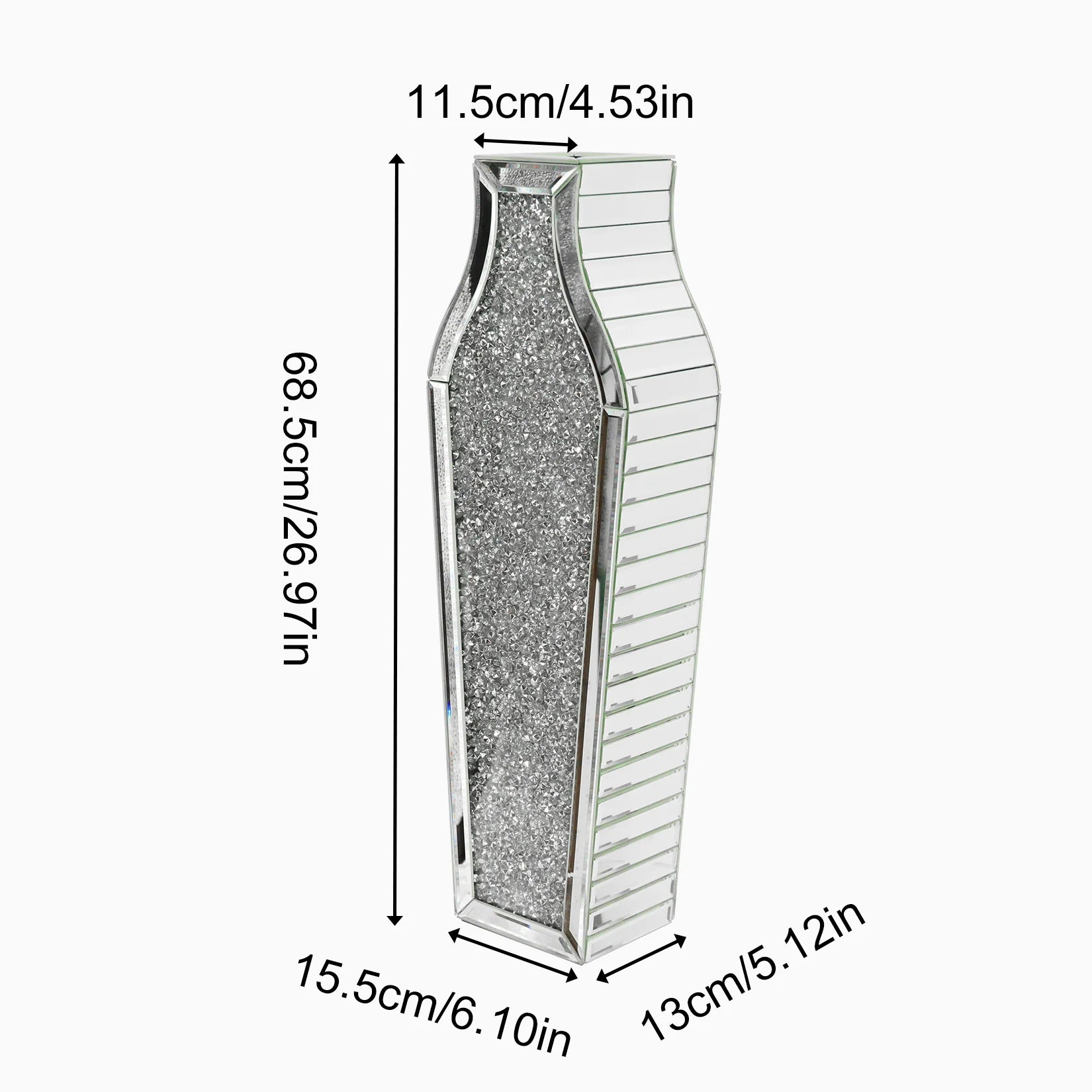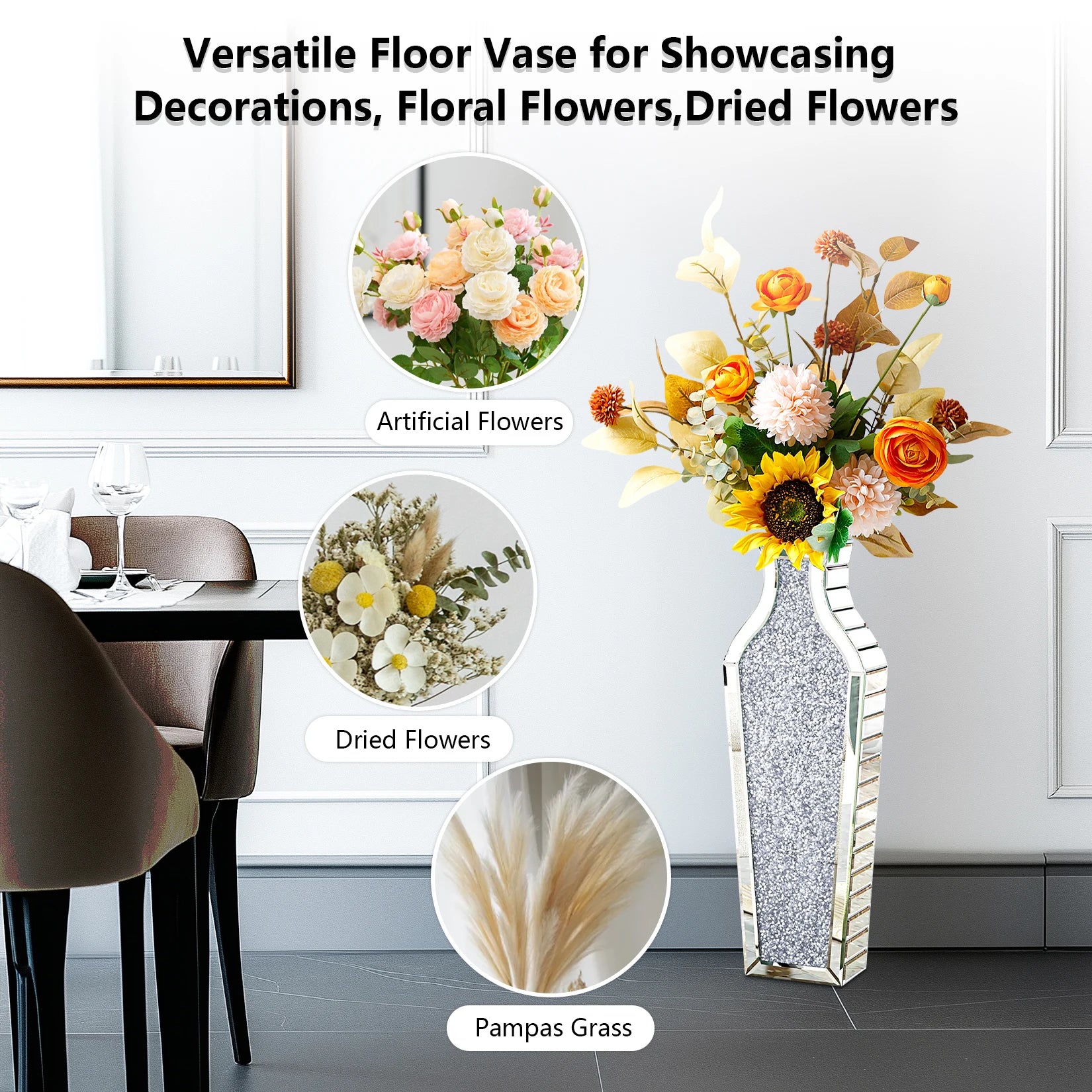 Tall Flower Vase Crushed Diamond Mirrored Floor Home Decor Vase