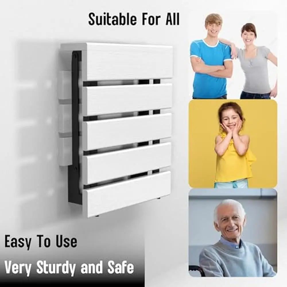 Teak Wood Wall Mounted Foldable Shower Seat 200Kg Capacity