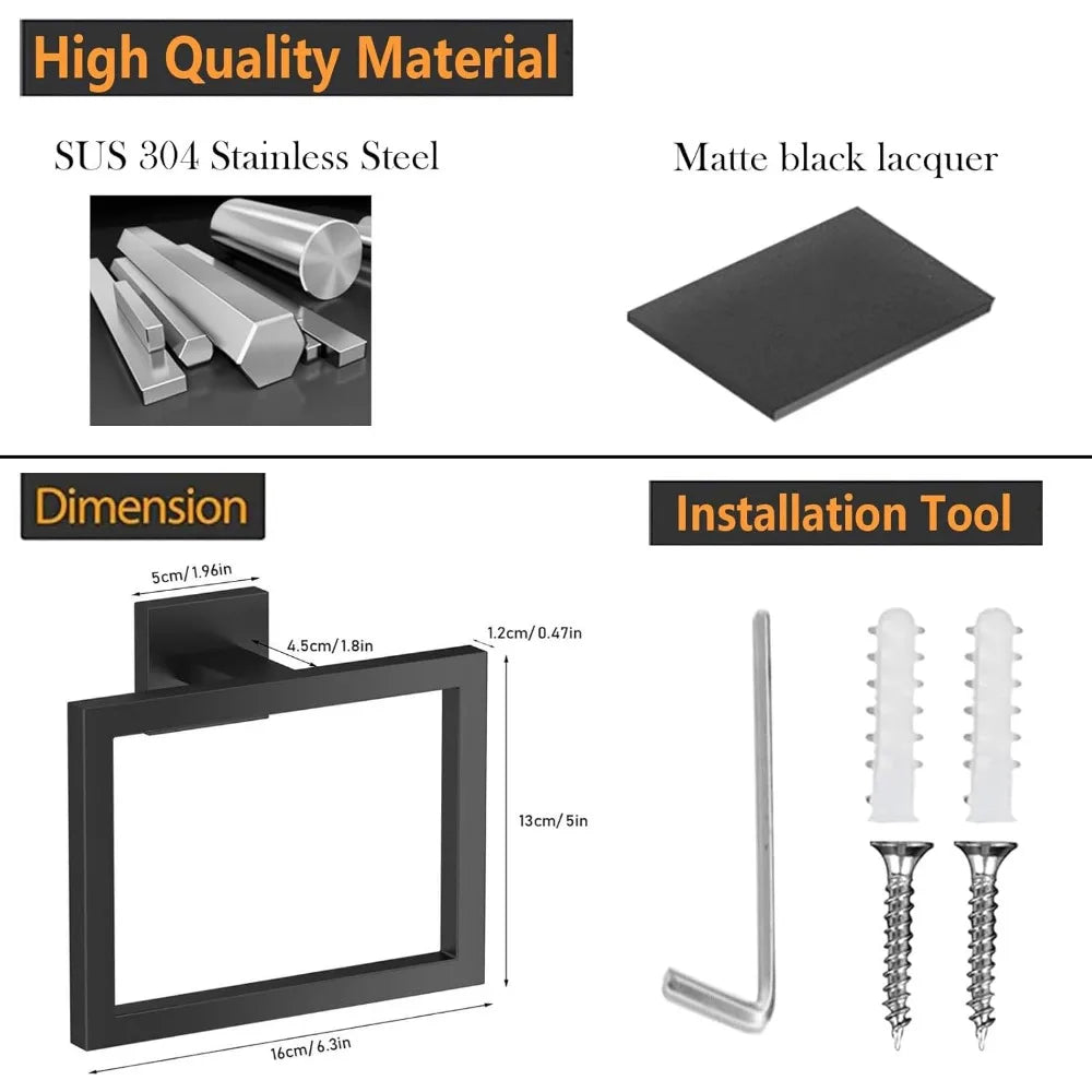 Thickened Stainless Steel Towel Ring Hand Towel Rack Square