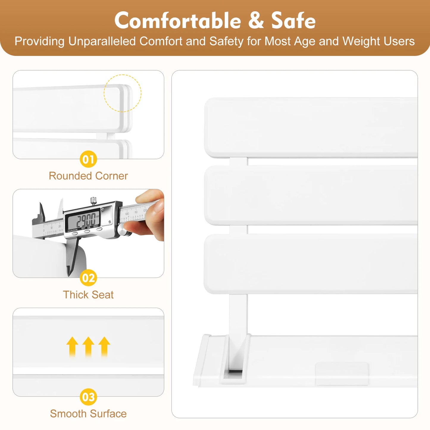 Designed for modern bathrooms, this wall-mounted folding shower seat offers a secure, non-slip surface and a clean white finish that blends with any décor. When not in use, simply fold the seat up to reclaim space, making it an ideal choice for smaller bathrooms without sacrificing comfort or safety.