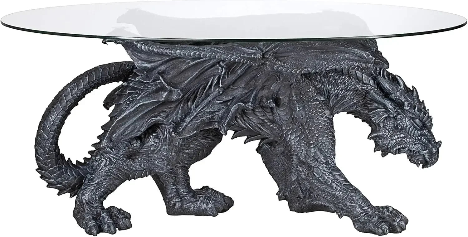Elevate your living space with the Warwickshire Dragon Gothic Glass Coffee Table, a 39-inch centerpiece that marries dramatic Gothic flair with a clean, contemporary surface. From Comfy Cottage Shop, a trusted name in quality home furnishings, this piece brings a distinctive focal point to any room. Origin: US.