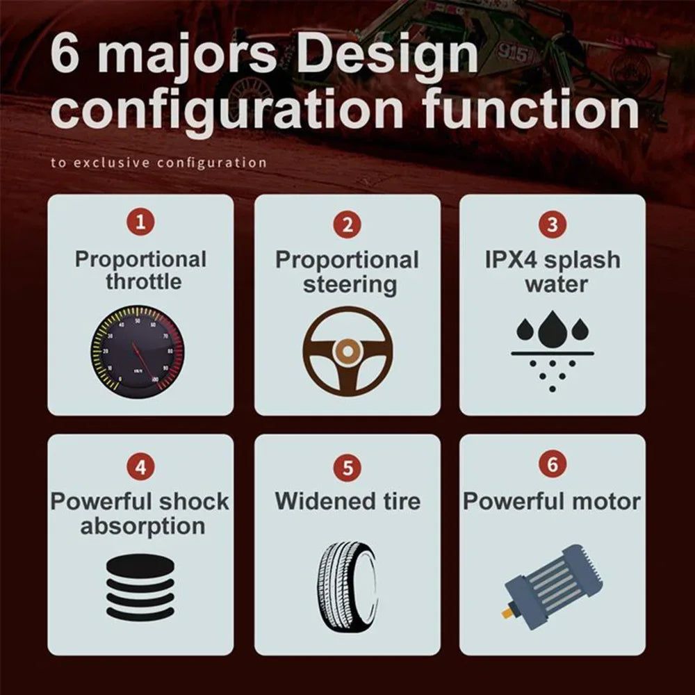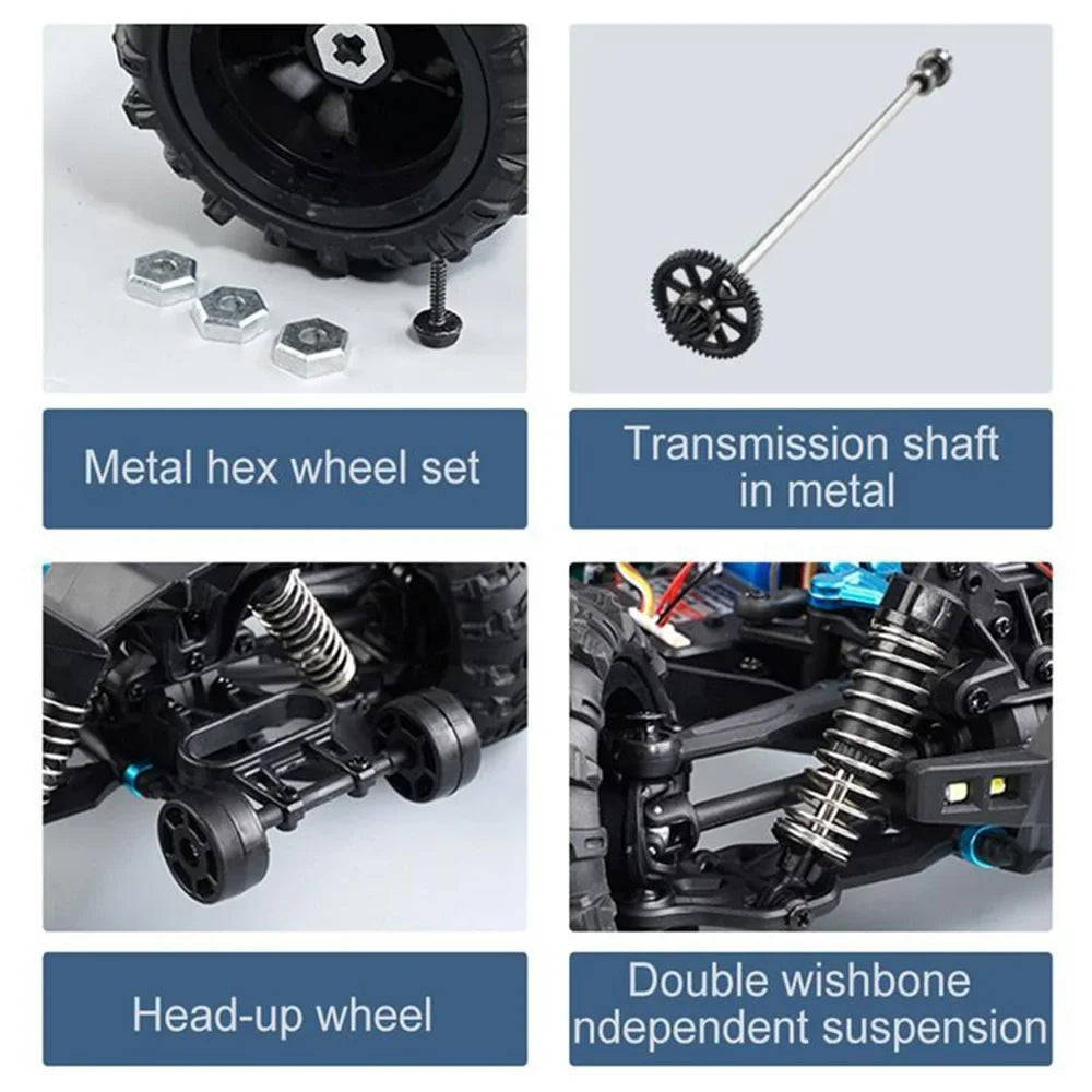 Experience high-octane off-road action with the WLtoys 1:16 Scale Large RC Car. This 4WD monster truck blasts up to 50 km/h, delivering thrilling speed and rock-solid traction on dirt, grass, and pavement. Built for durability, it conquers rough terrain with a rugged chassis and oversized tires while maintaining precise control at speed.