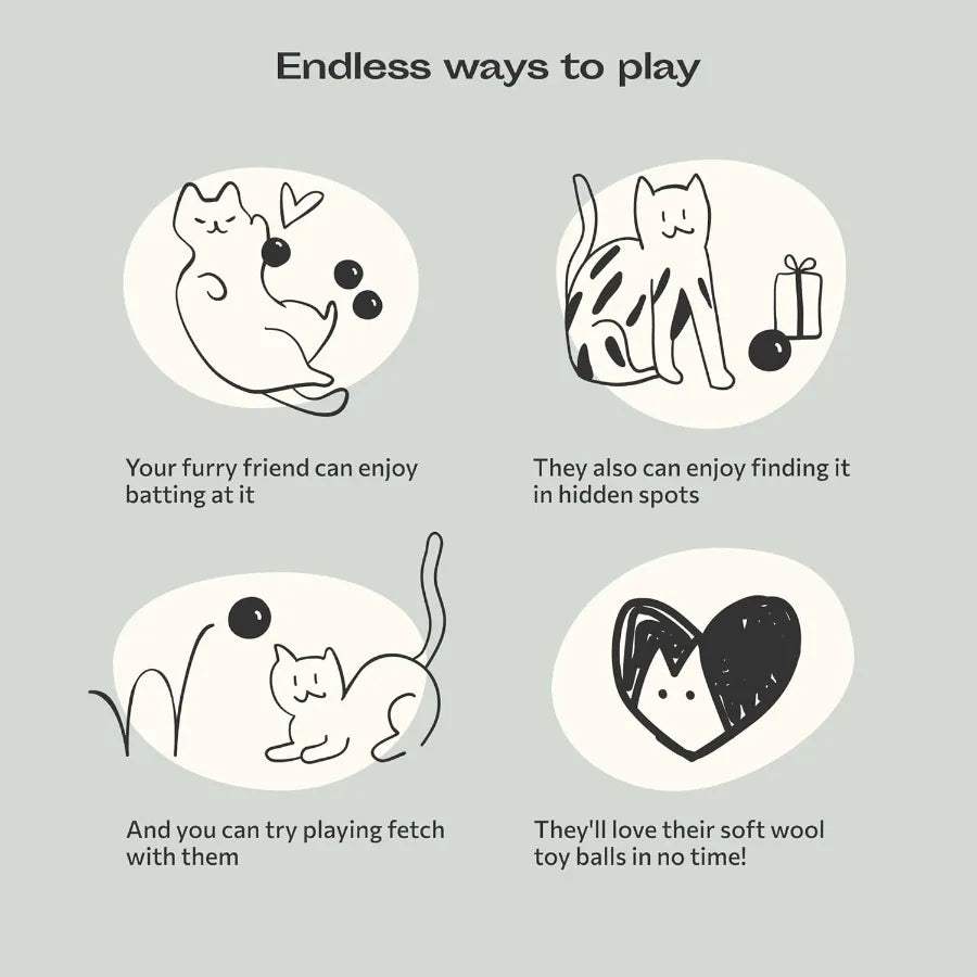 From Comfy Cottage Shop, the brand you trust for pet-safe toys, the Wool Ball Toys 6 Pack delivers simple, engaging play for both cats and small dogs. Each 1.5-inch ball is designed for batting, chasing, and interactive fun without any fuss or fussiness.