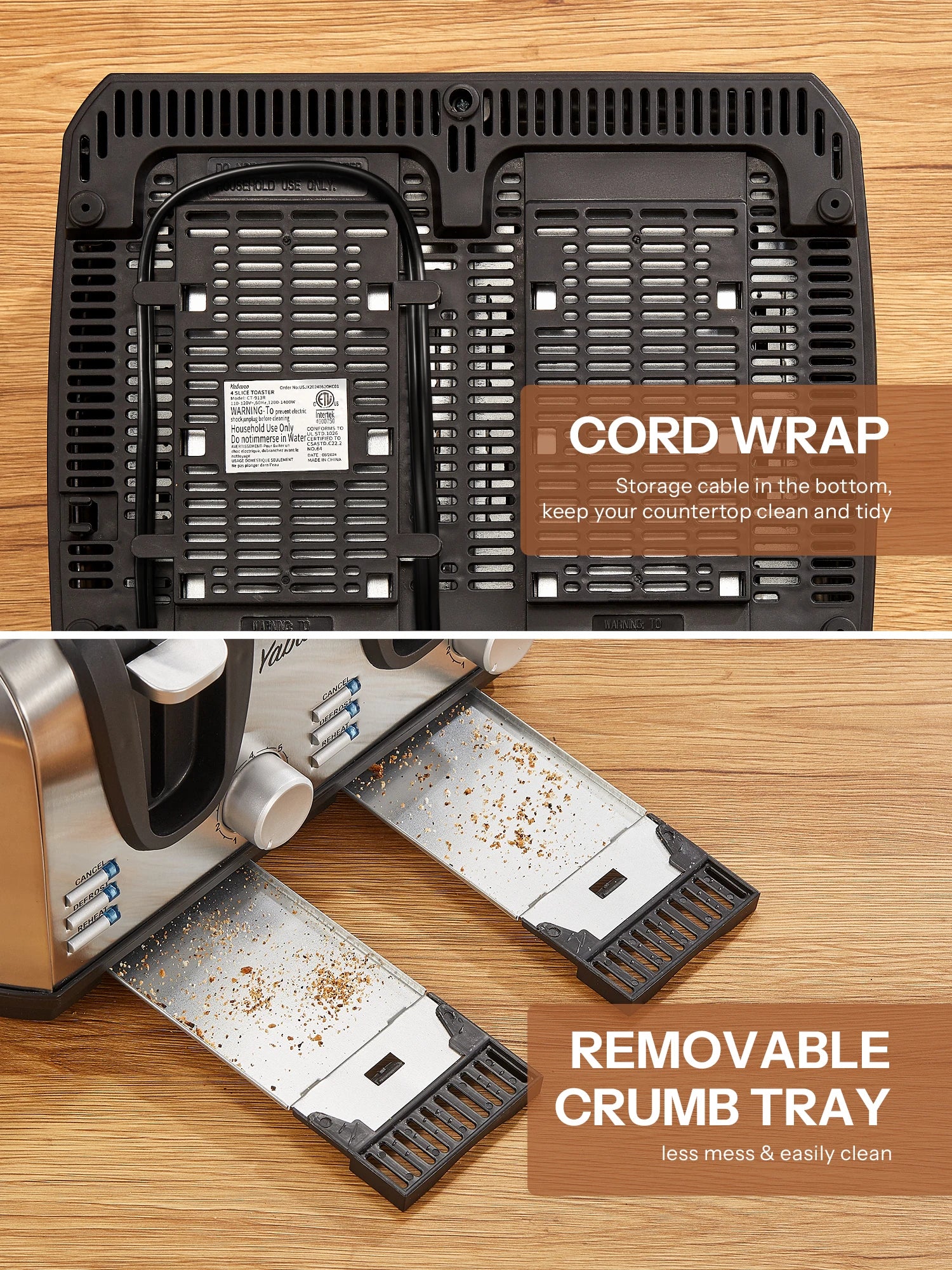 - Removable Crumb Tray: Makes cleanup a breeze.