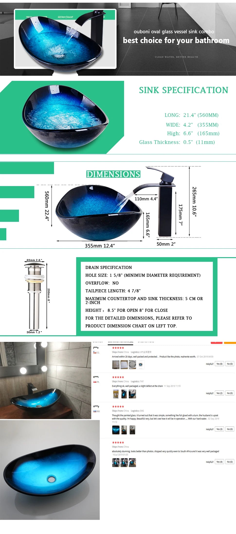 ZAPPO Tempered Glass Vessel Sink With Waterfall Faucet Blue
