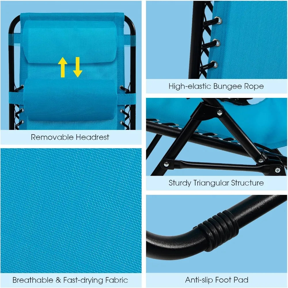 Zero Gravity Lounge Chairs 160 Degree Adjustable Folding Recliner with Pillow and Cup Holder 350 Pounds Comfy Outdoor Lounge Chairs
